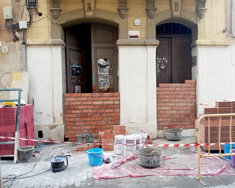 Un cop buidades les cases i visitades per alguns responsables polítics de l’Ajuntament, els tècnics han començat a tapiar l’estructura. De fet les totxanes no s’han col·locat només a la porta exterior, sinò que també han enmurallat algunes obertures interiors de les cases, tal com es podia observar a peu de carrer. Des del Centre d’Estudis Ignasi Iglesias, Jordi Petit lamenta no poder haver visitat l’interior de la casa abans d’iniciar-se les tasques de cobertura de portes i finestres i ha assegurat a aquest mitjà que des de l’entitat demanaran una reunió urgent amb l’adminsitració local.