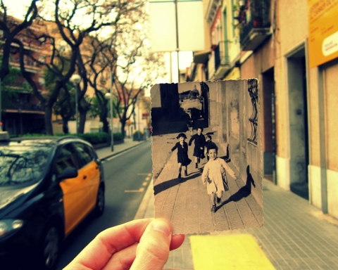 FOTOGRAFIA | Tres generacions de dones al carrer Servet. @ReSantAndreu. Imatge original publicada per la Núria Abella Soria al grup de Facebook Sant Andreu de Palomar Abans.