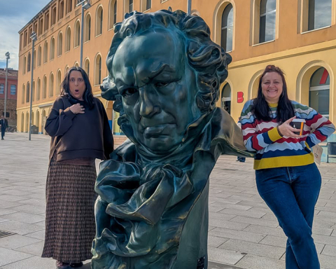 Sant Andreu s’ha llevat aquest 10 de febrer amb un Goya monumental a la plaça de Can Fabra, un dels set gegants que l’Acadèmia de Cine ha escampat per la ciutat per escalfar motors de cara a la 40a gala dels Premis Goya, que se celebrarà el 28 de febrer a l’Auditori del CCIB, al Fòrum. L’estatueta, de dimensions descomunals, s’ha instal·lat just davant de la Biblioteca Ignasi Iglésias – Can Fabra, un dels espais culturals per excel·lència de Sant Andreu, fet que no ha fet més que generar multitud de selfies, fotografies familiars i comentaris entre els transeünts.