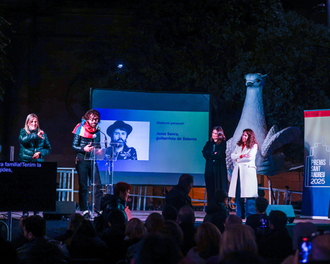 Tret de sortida a la Festa Major de Sant Andreu amb els Premis Sant Andreu. Aquest dijous a la plaça d’Orfila, la regidora del Districte, Marta Villanueva, i la presidenta, Rosa Suriñach, han entregat els diferents guardons en un acte que ha combinat protocol i festivitat. Entre aquests reconeixements, el premi al millor projecte d’entitat ha recaigut en la Fundació Via – Guasp, el premi la distinció per aniversari ha sigut pel Grup d’Amics Gais, Lesbianes, Trans, Bisexuals, Intersexuals i Queer (GAG) i la distinció personal ha sigut per l’andreuenc i guitarrista de Sidonie, Jesús Senra.